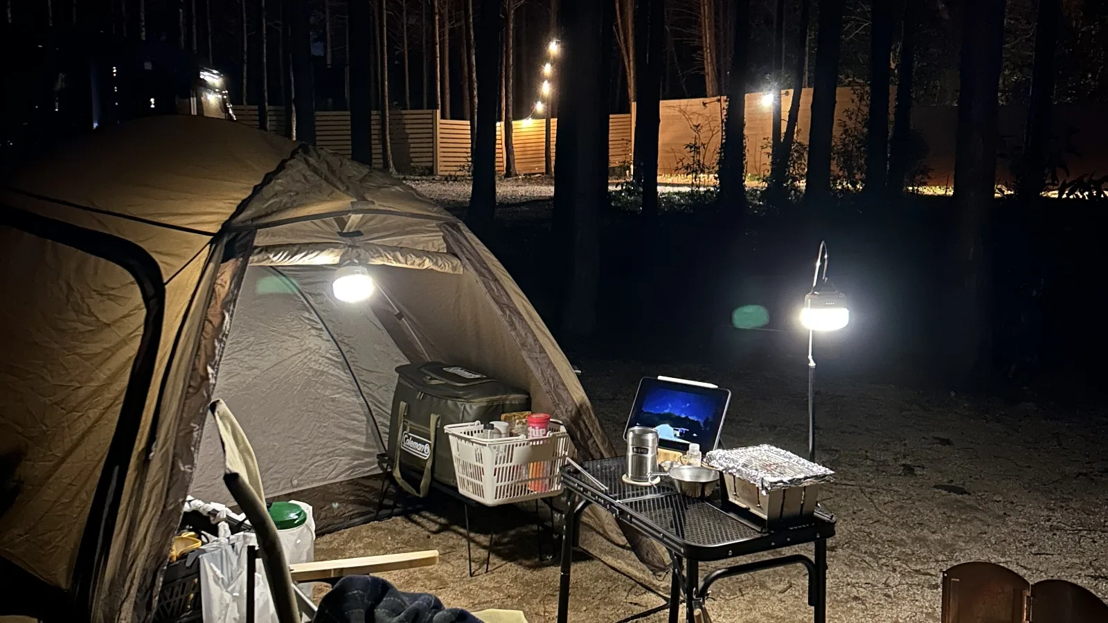 サイト内に電飾が灯るので、ライトアップの中キャンプを楽しむことができます。