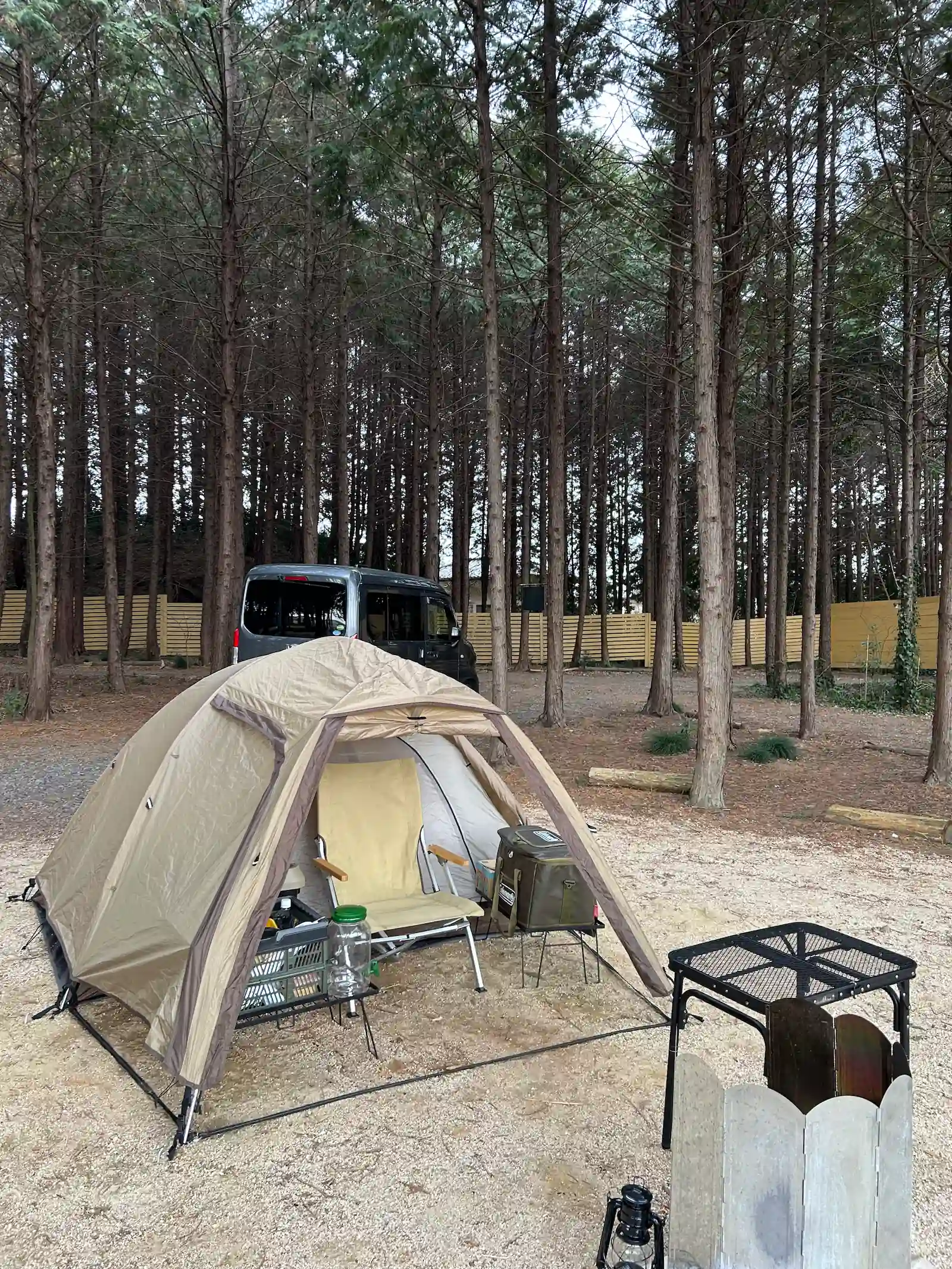キャンプ場の立地上、周辺に学校や駅、車通りがあるため、ほどよく生活音があり、完ソロでも安心感が感じられました。